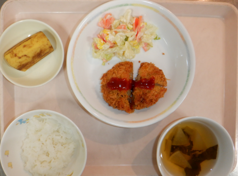 ※シークレットメニューは献立配付の際、食材だけをお知らせして園児とご家族の方とでメニューを予想する食育の試みです。今回の答えは『コロッケ』でした! -