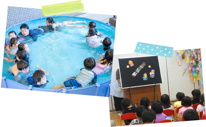 年長組みんなで保育園に1泊します。保護者から離れ、友達と一緒に力を合わせて様々な経験をすることで、翌日の表情には自信が溢れます。