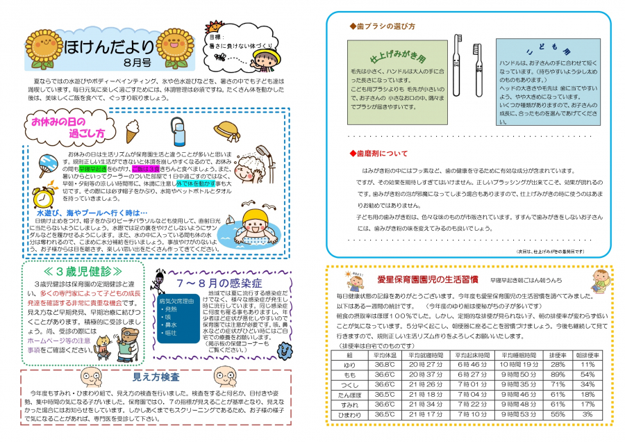 2025年度8月の保健だよりを更新いたしました。